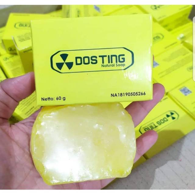 Walaupun sabun ini sebenarnya kegunaannya hampir sama dengan sabun mandi pada umumnya tetapi ada beberapa kandungan sabun dosting yang membuat lain dari manfaat sabun ini, dan saran saya berhati - hatilah ketika membeli sabun ini, karena jangan sampai kamu tertipu dengan barang palsu. Dan inilah beberapa manfaat lain tentang sabun dosting. 1. Memutihkan Kulit Tubuh Dan Wajah Sabun dosting ini ternyata mampu untuk memutihkan kulit pada tubuh dan wajah, itu bisa terjadi karena ada beberapa kandungan lain seperti glutathione, kojic dan alpha arbutin. Karena beberapa kandungan tersebut sabun dosting ini mampu menjadi sabun pemutih dan sekaligus menjadi sabun pembersih. 2. Menghaluskan Kulit Tubuh Dan Wajah Ternyata selain 3 bahan yang sudah saya sebutkan tadi ternyata sabun dosting juga mengandung colagen yang juga berkhasiat untuk mengencangkan dan mencerahkan kulit pada wajah dan kulit tubuh. 3. Menghilangkan Jerawat Dan Komedo Tak hanya memutihkan, sabun dosting ini juga mampu untuk membuang jauh jauh jerawat dan komedo yang kehadirannya membuat beberapa wanita ini merasa tidak pede. 4. Menghilangkan Kotoran Pada Kulit Seperti selayaknya sabun mandi, ternyata sabun dosting ini juga mampu untuk menghilangkan kotoran yang menempel pada kulit kamu, seperti daki dan kotoran lainnya. Sabun dosting ini ternyata baik digunakan untuk kamu yang bekerja seharian diluar rumah. 5. Menyamarkan Bekas Luka Dan Noda Luka karena kulit kaki mencium knalpot, ataupun bekas luka setelah terjatuh memang menghilangkan rasa percaya diri kita. Oleh karena itu sabun dosting ini juga mampu untuk menyamarkan bekas luka pada daerah tertentu di kulit kamu.